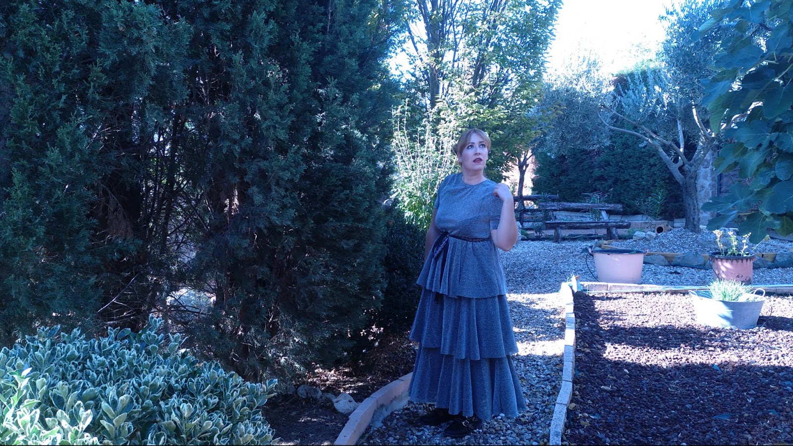 El primero que os enseño es este vestido en color plata de manga corta, es tejido de hilo brillante de plata, este tejido me encanta por que nunca pasa de moda y siempre es de lo más actual, lo que me gusta de el son sus capas de volantes alrededor de toda la falda, a modo de accesorio alrededor de la cintura tiene una cinta negra a modo de cinturón.